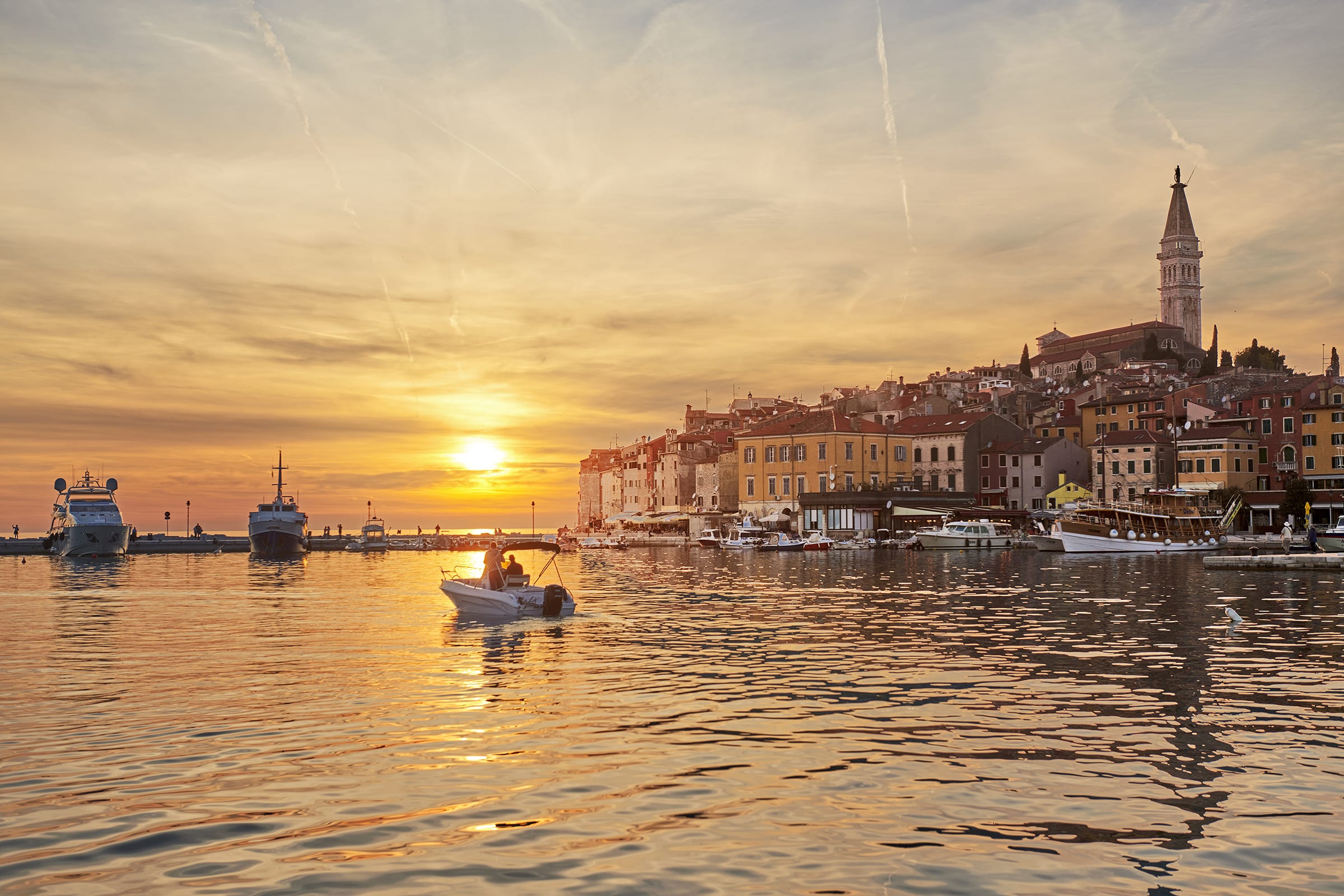 Bajkowe miasteczko na zachodnim wybrzeżu Istrii, w którym kamienne uliczki z malowniczymi galeriami, sklepikami i restauracjami, zaprowadzą Cię do słynnej dzwonnicy kościoła św. Eufemii, wznoszącej się na wzgórzu pośrodku półwyspu. Rovinj jest otoczony 22 wyspami i wysepkami, a wpływając do miasta znajdziesz się w jednej z najbardziej ekskluzywnych marin na Adriatyku.
