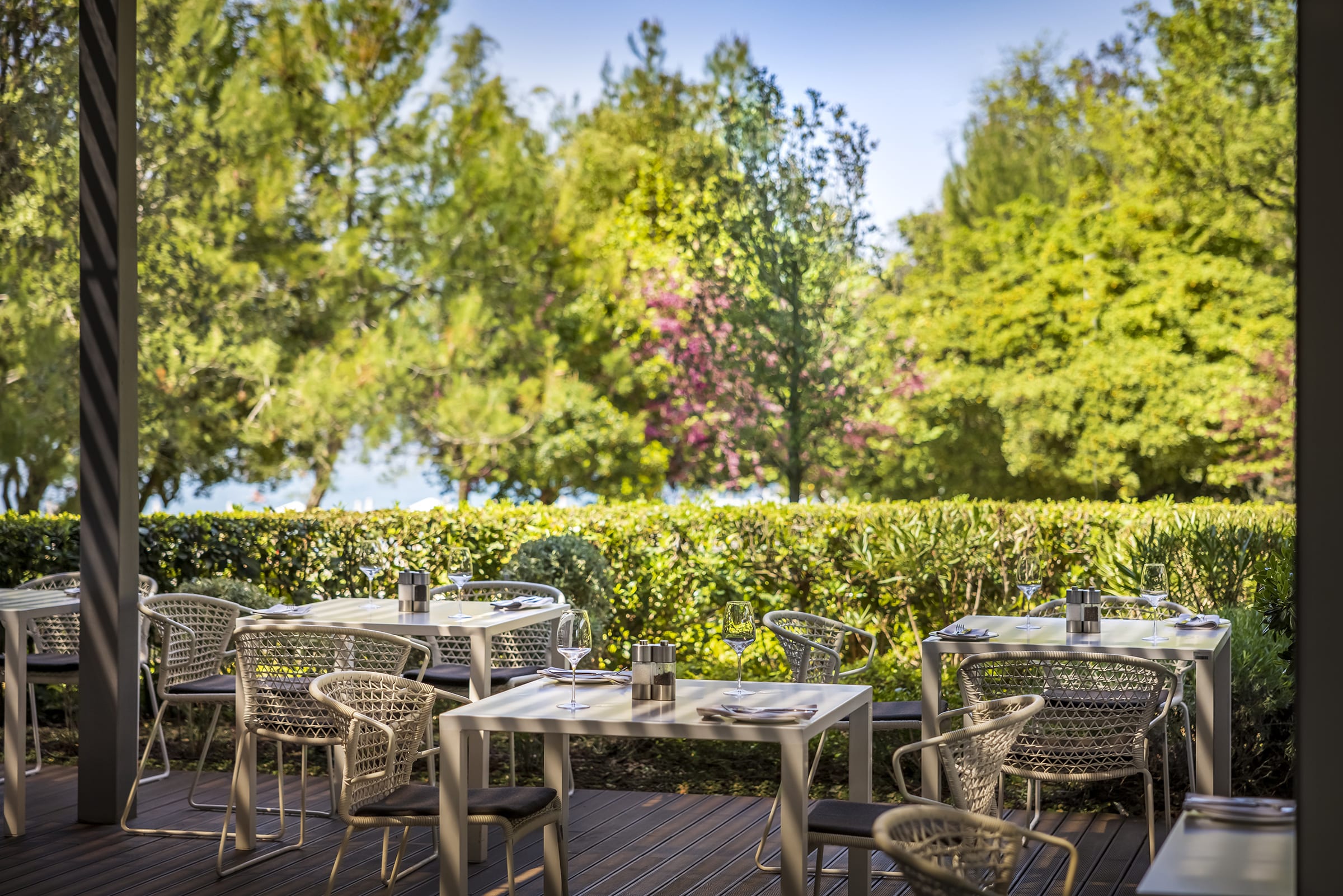 Nestled in lush greenery, Oleander offers the perfect setting for a light lunch or relaxed dinner. Enjoy dishes like sustainably caught tuna, Adriatic mussels, rump steak tagliata, or black truffle pizza.